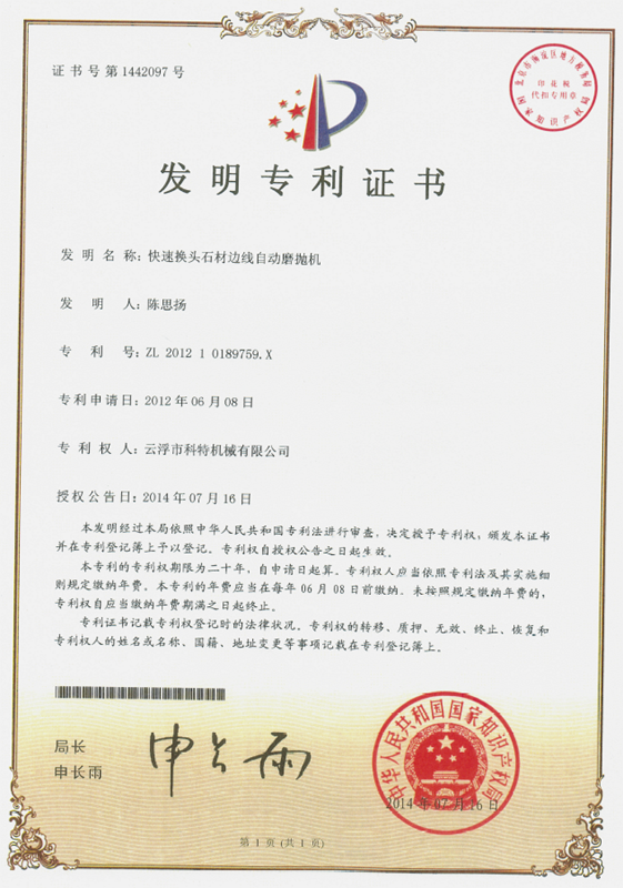 企業(yè)組建了“云浮市石材機械裝備工程技術(shù)研究開發(fā)中心”,并與高校和科研院所密切合作,致力于光機電一體化產(chǎn)品的研發(fā)、生產(chǎn)、銷售和服務。主要產(chǎn)品有框架鋸、全自動連續(xù)磨拋機、橋式自動切割機、全自動仿形石線機、數(shù)控金剛石繩鋸、裁切機等。產(chǎn)品具有自動化程度高、加工精度高和生產(chǎn)效率高等特點。產(chǎn)品除國內(nèi)銷售外,還出口到歐美、東南亞、韓國、印度、中東、非洲、俄羅斯、澳大利亞等國家和地區(qū),深受用戶好評。“橋式自動切割機”被認定為廣東省高新技術(shù)產(chǎn)品,擁有發(fā)明專利1項、實用新型專利1項。